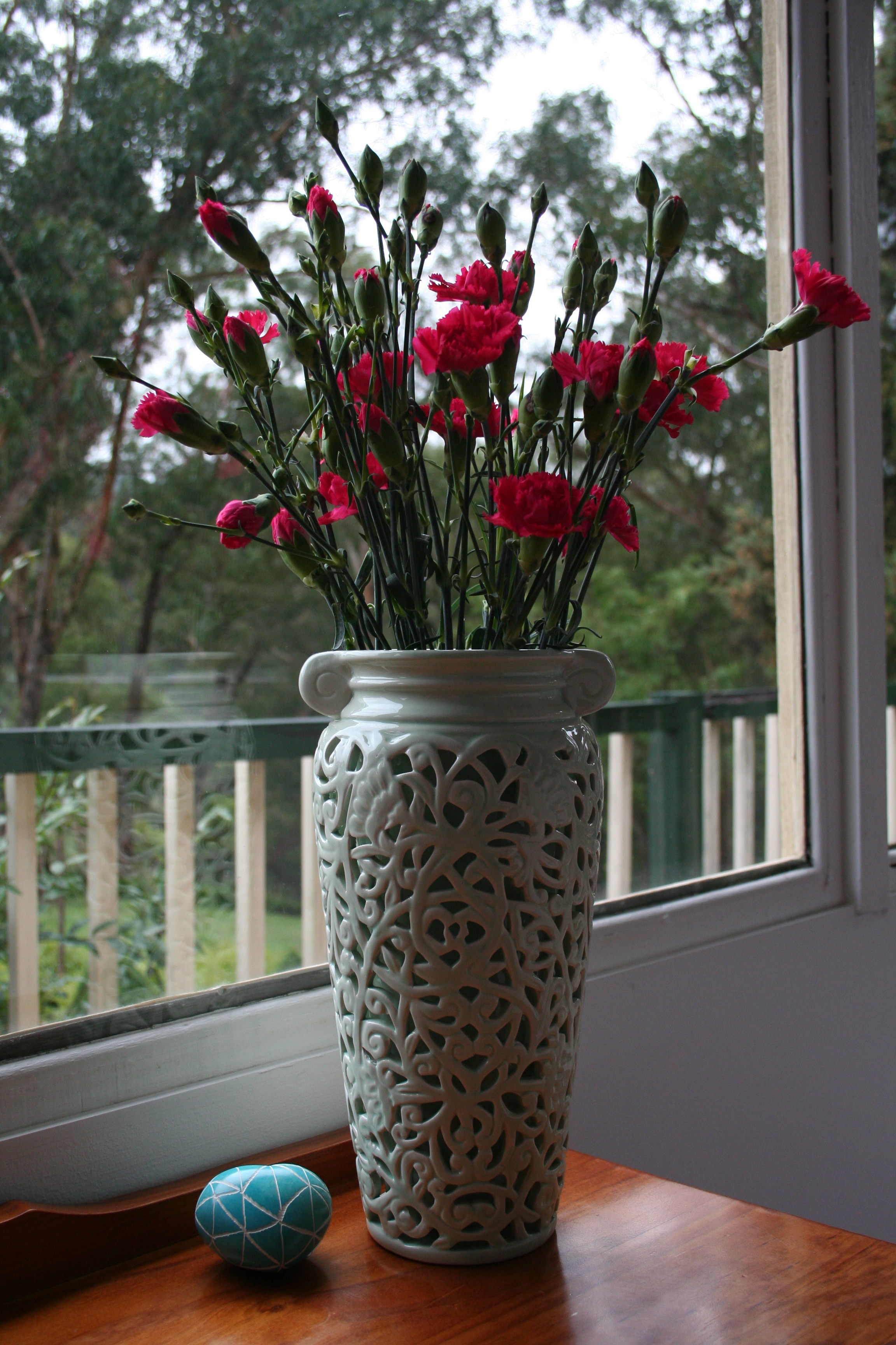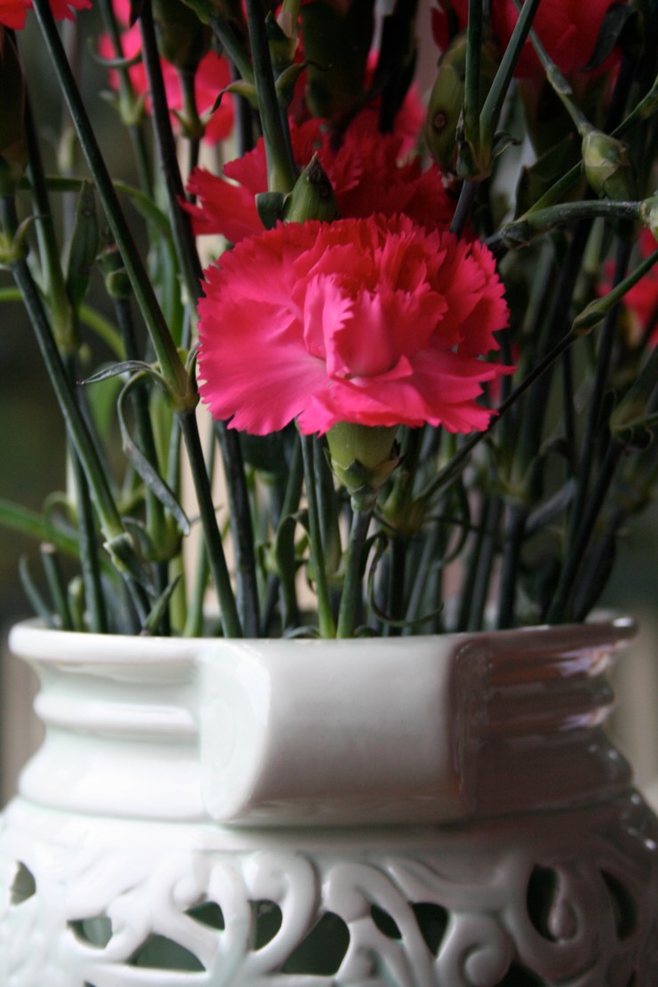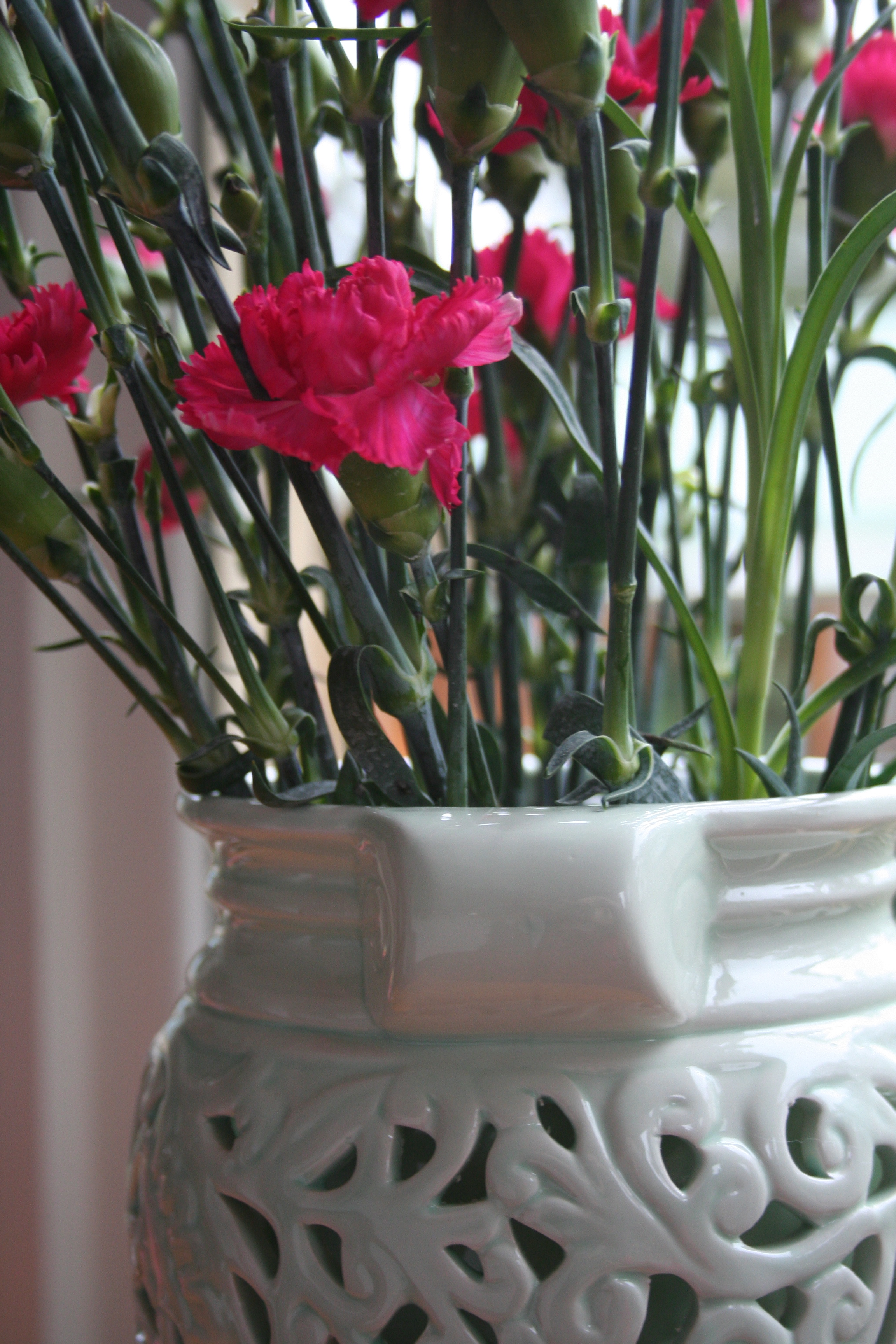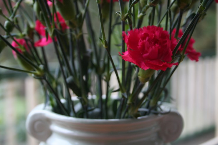 My husband brought carnations home last night. Because I was feeling sick, with a cold.