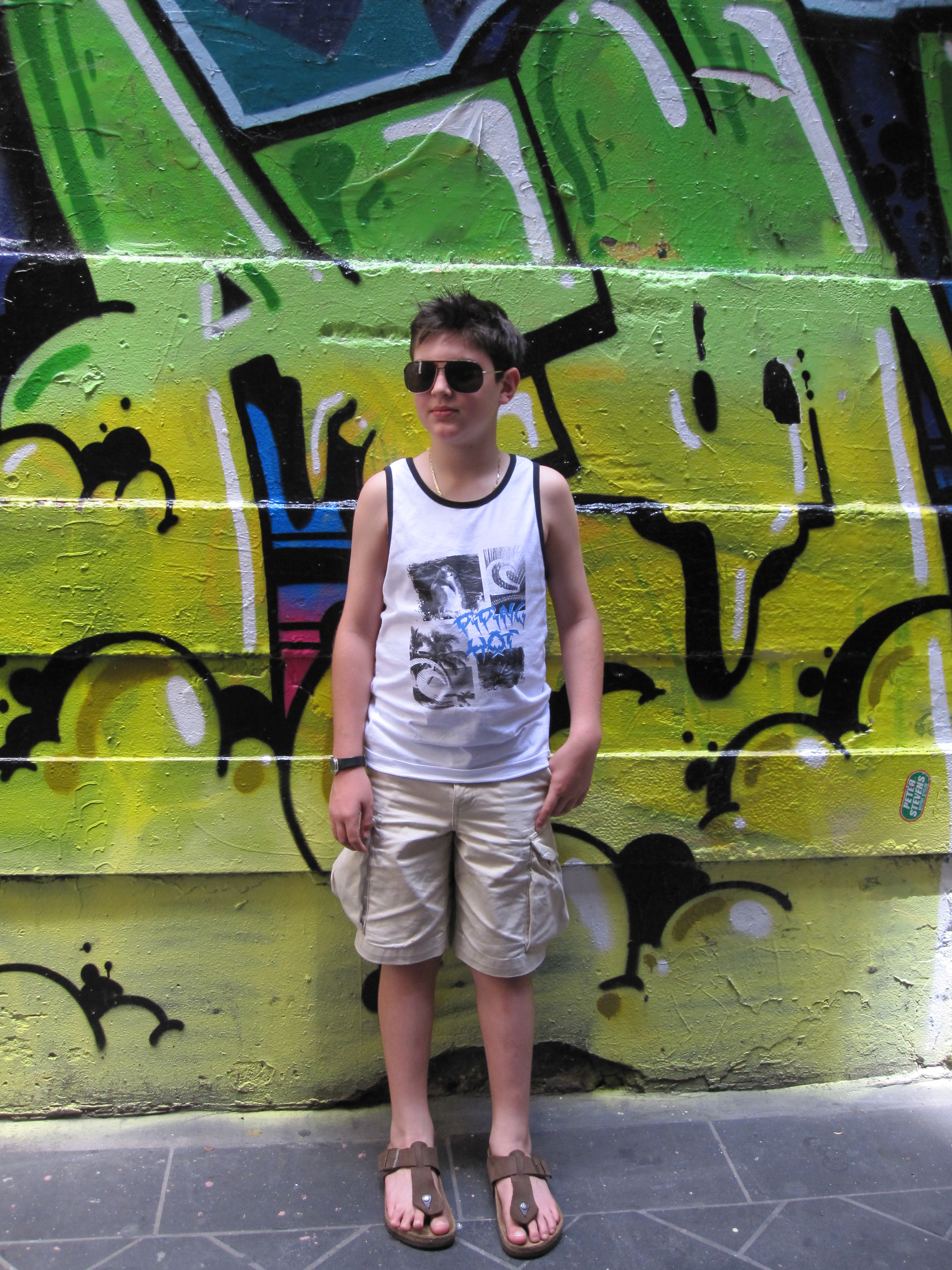 Last year, I took my nephews into the city to see an exhibition, and down a laneway for lunch. I snapped this quick photo of one of them, whilst he was waiting for his brother to “hurry up” and captured only a mere second of his life.