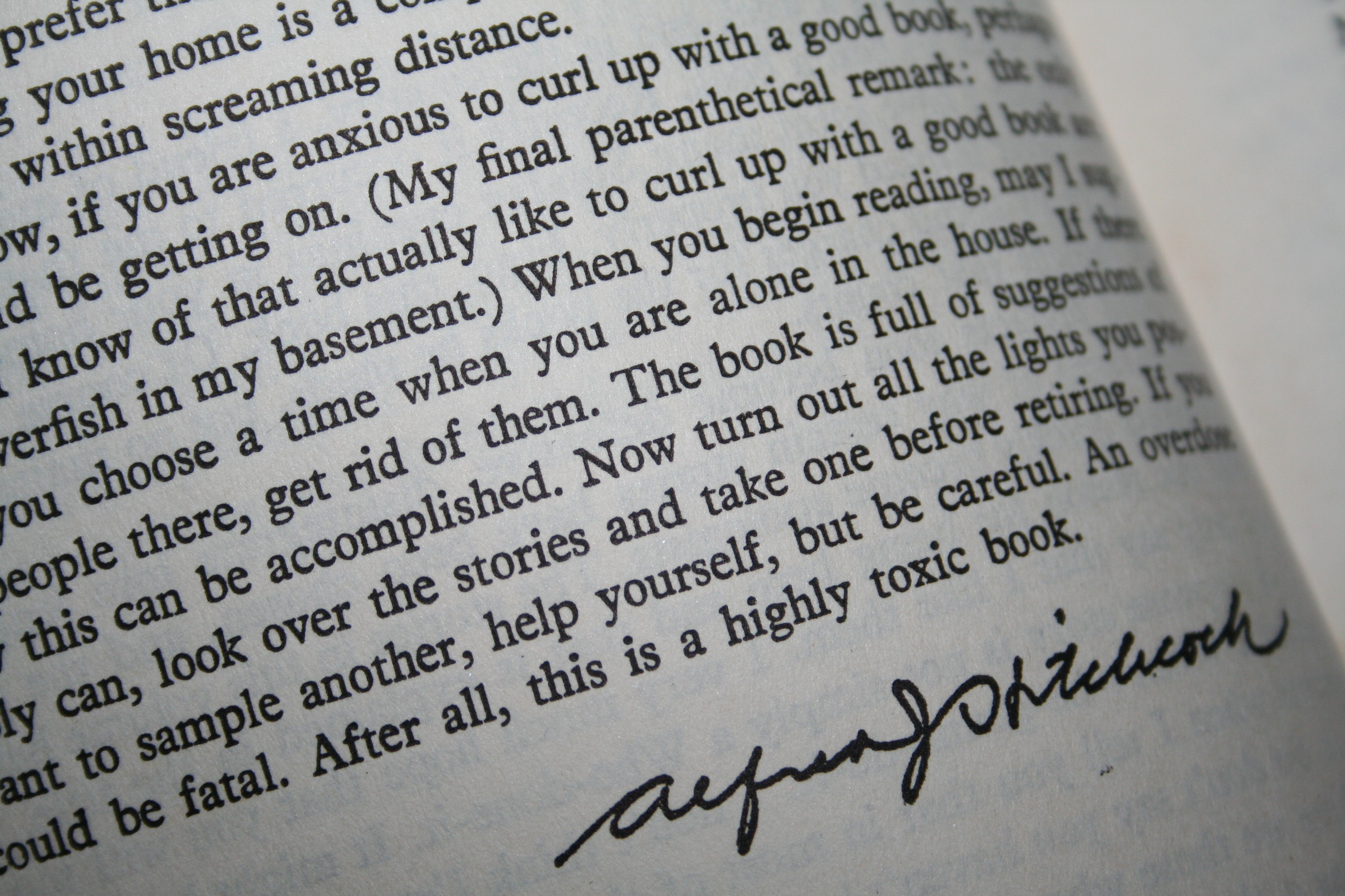 I will be taking Hitchcock’s personal advice prior to starting the suspenseful collection, “When you begin reading, may I suggest you choose a time when you are alone in the house. If there are people there, get rid of them.”