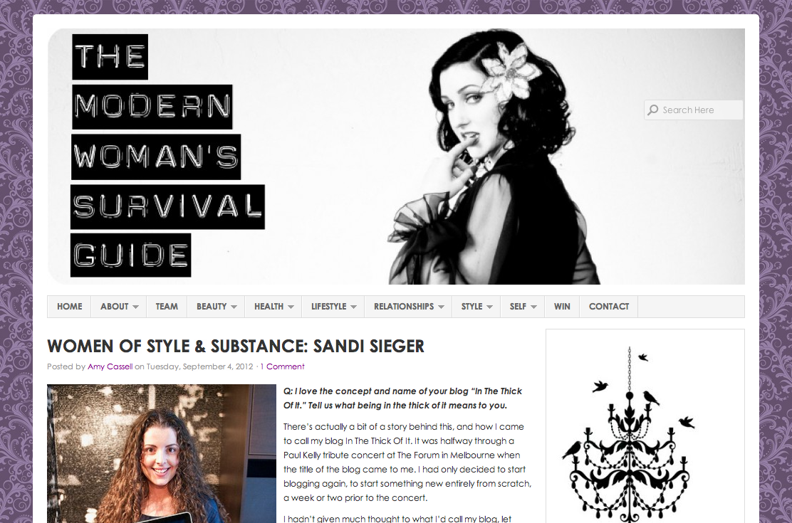 The second was in the go-to guide for women who want a fabulous life – The Modern Woman’s Survival Guide. I spoke to Amy Cassel about this very blog, why I like creating and pioneering in the online space and how I keep the plates spinning without allowing them to smash.