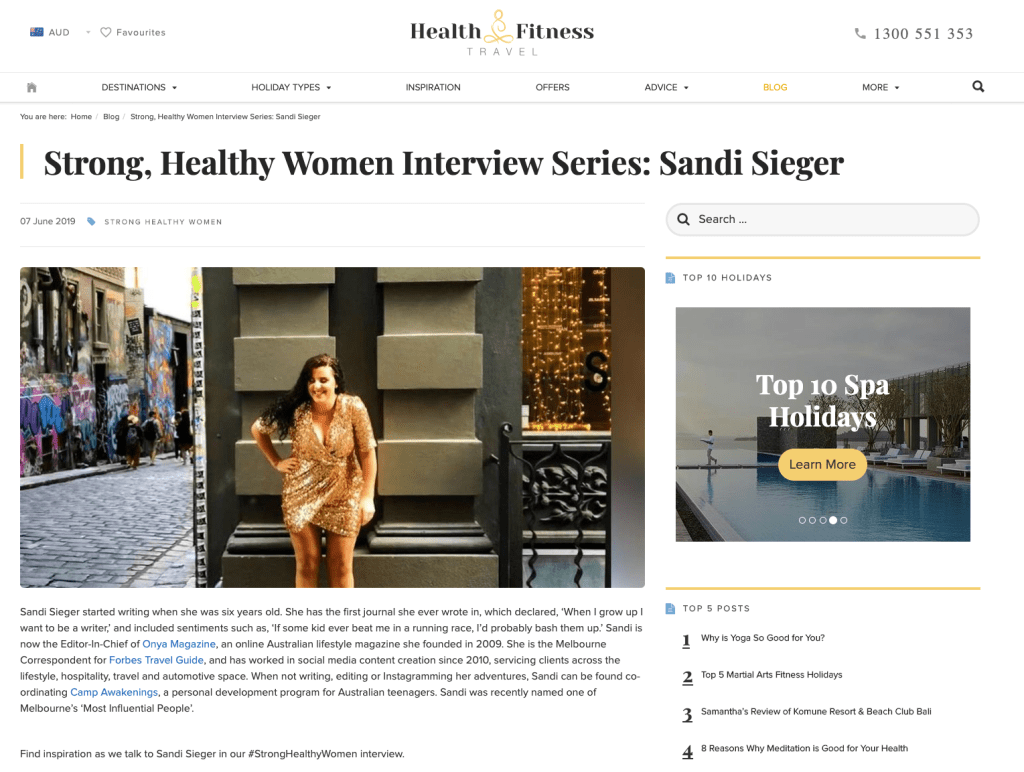 Thanks to Health & Fitness Travel for the feature in their Strong, Healthy Women Interview Series.